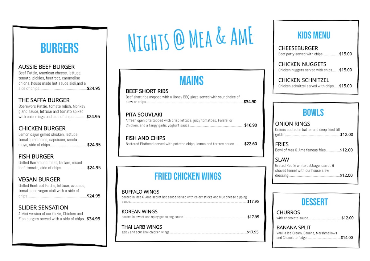 Mea & Ame Menu